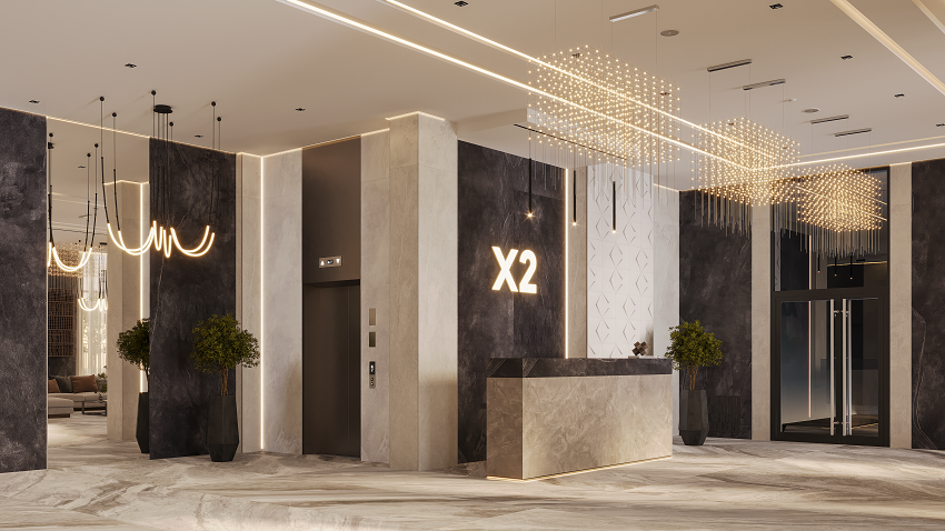 Концепция «константы комфорта», заложенная в проект компанией «Кировский ССК», стала базисом философии этого жилого комплекса. Каждый аспект «Х2» сконцентрирован на заботе о резидентах. Входная группа в здание прозрачная и расположена на уровне земли. Это удачное решение с точки зрения эстетики и безопасности. Для удобства жителей и гостей предусмотрены яркая навигация, безбарьерная среда и два скоростных лифта. Территория комплекса закрыта для машин и посторонних. Благодаря системе управления доступом попасть сюда могут только жители и их гости.