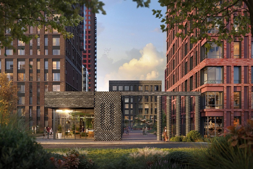 На первых этажах предусмотрены удобные помещения для хранения колясок, велосипедов и самокатов. Концепция холлов разработана студией Studio 211. На крыше стилобата разместится закрытая дворовая территория с озеленением, игровыми и спортивными зонами.