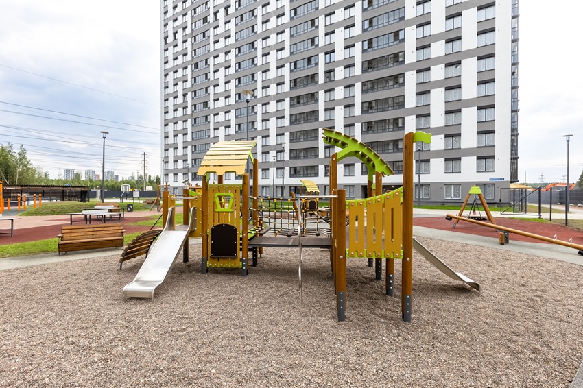 На придомовой территории, оборудованной системами контроля доступа и видеонаблюдения, реализована концепция «двор без машин». Комфортно перемещаться между внутренним пространством для жителей и улицей позволяют двусторонние парадные. В закрытых дворах организованы детские и спортивные площадки, а также места для отдыха.