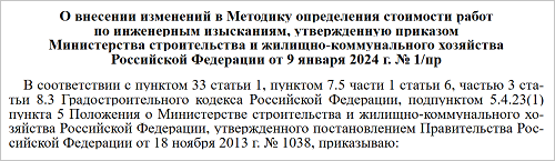 Проект приказа создан на основании практики применения методики определения стоимости работ по инженерным изысканиям (ИИ), а также письменных обращений физических и юридических лиц.