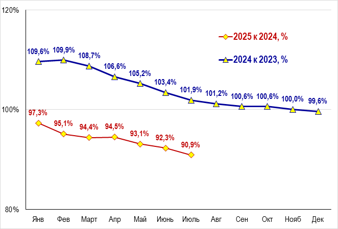 конструкций за январь — июль 2024 и 2025 годов, % к
