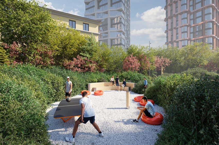 Кроме видеостанции, на площадке для подростков в «Тишинском бульваре» предусмотрено оборудование для текбола — нового вида спорта с элементами настольного тенниса и футбола, а в уютном амфитеатре с креслами-пуфами тинейджерам комфортно слушать вновь популярные хиты нулевых, смотреть видеоподборки любимых каналов в соцсетях или просто обсуждать школьные новости. Во всех домах Sminex однородная социальная среда, поэтому дети легко находят во дворах-парках друзей по интересам.