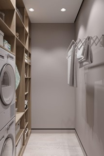 Отдельные помещения в квартире, где предусмотрено место для стиральной и сушильной машины, гладильной доски, напольной или настенной сушки для вещей из деликатных тканей. Удобно, когда все, что связано с уходом за одеждой, находится в одном месте.