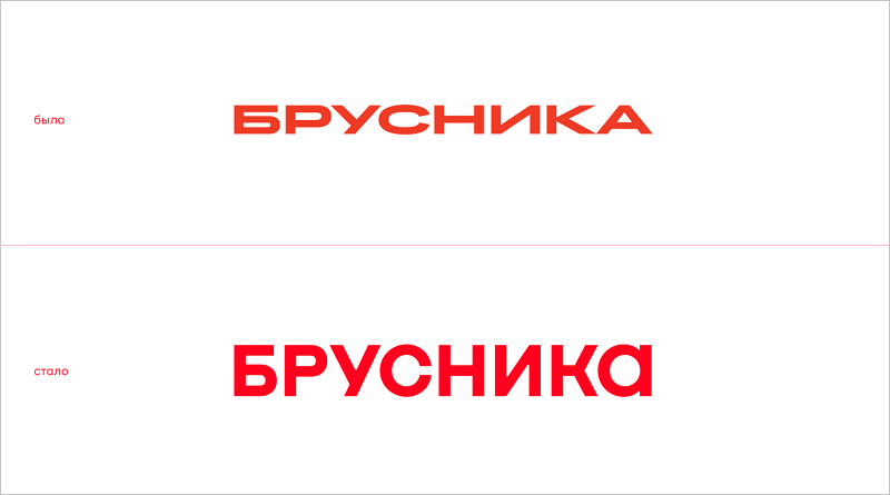 В компании ONY сохранили узнаваемый знак Брусники, но обновили начертание вордмарка, сделав его более точным и геометричным. Название компании по-прежнему набрано прописными буквами, исключение — строчная «а». Она поддерживает общую идею, рифмуется с округлой буквой С и делает конструкцию ритмичной. Такое решение позволяет сохранить баланс между строгостью прописных и гуманистичностью строчных букв. А само слово «Брусника» перестает быть просто набранным капслоком на клавиатуре.