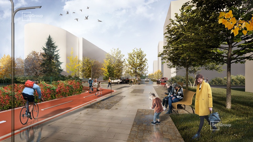 Setl Group приступил к благоустройству протяженного пешеходного променада в жилом комплексе «Панорама парк Сосновка» в Выборгском районе Петербурга. Новое общественное пространство соединит пр. Тореза и пр. Энгельса. Если их пересечь, то можно будет пройтись комфортным маршрутом от Сосновки до Удельного парка.