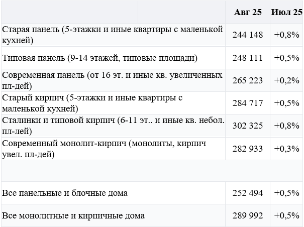 Это хорошо видно на примере динамики цен по типам домов: с наибольшим плюсом август завершили однокомнатные квартиры и старый жилой фонд.