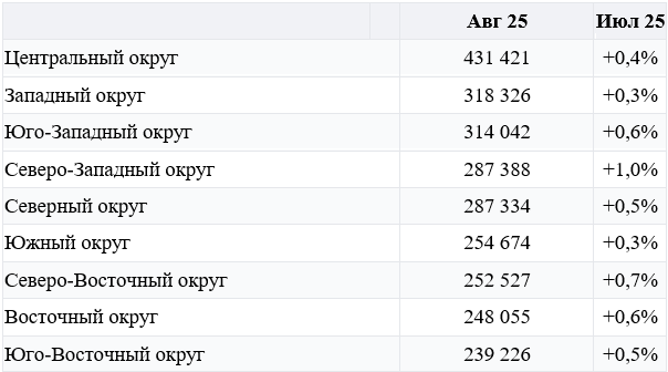 Цены на жилье по округам, руб.