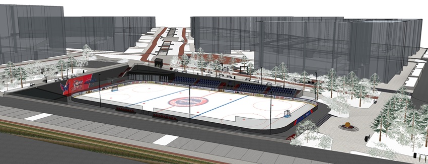 Центральным элементом площади станет хоккейная коробка, выполненная в точных размерах площадки НХЛ на легендарном стадионе Capital One Arena. Это придаст особую атмосферу месту и позволит любителям хоккея почувствовать себя частью большого спорта.