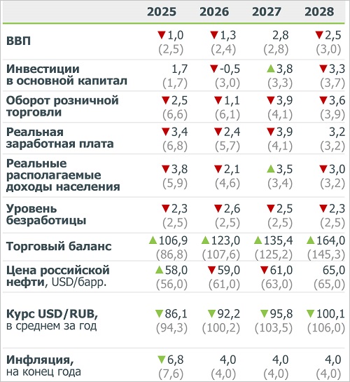 году, если не указано иное (в скобках — предыдущий прогноз