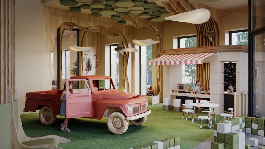 Первый готовый Clubhouse компании — в доме «Достижение» в районе Останкина. В павильоне, встроенном в ландшафтный двор-парк, находятся клубная гостиная и игровой клуб для маленьких жителей, на крыше — прогулочные маршруты и терраса для отдыха. Всё работает как единая экосистема: из детской комнаты есть выход на развивающую площадку на свежем воздухе, из гостиной — в зону амфитеатра. Ещё в одном павильоне расположен фитнес с тренажёрами для всех групп мышц. Инвестиции в создание клубной инфраструктуры дома составили 361 млн рублей.
