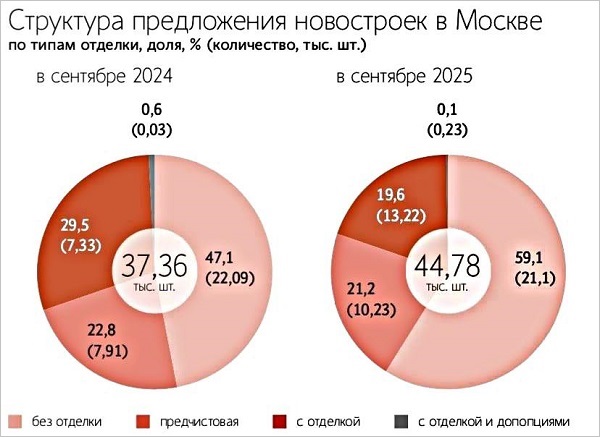 За прошедший год на первичном рынке Старой Москвы доля вариантов без отделки прибавила 15 п. п. и к концу сентября достигла рекордных 61,1%, сообщили «Ведомости», ссылаясь на данные компании Метриум.