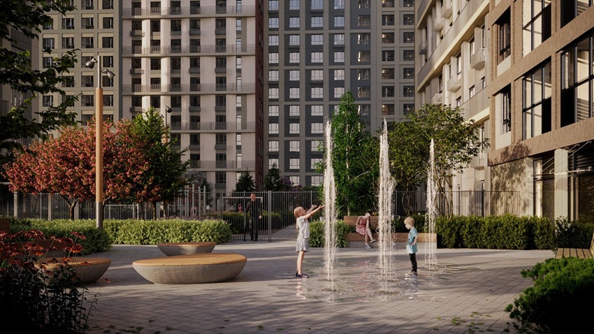 Концепция благоустройства квартала включает в себя зеленый сквер для прогулок и отдыха, тенистые перголы с качелями и гамаки, цветочный сад с беседкой, зону для пикников, зону релакса у пруда с лежаками, площадки для детей разных возрастов, воркаут-зону для спортивных тренировок и йоги и площадку со столами для настольного тенниса, business point, а также площадь для мероприятий с новогодней елью. С набережной Нижне-Исетского пруда сквер будет соединен единым прогулочным маршрутом, а его озеленение будет выполнено с применением различных сортов растений.