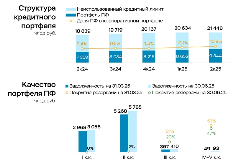 Объем кредитных лимитов вырос на 4,0%, до 21,4 трлн руб., а портфель проектного финансирования (ПФ) — на 8%, до 9,3 трлн руб.