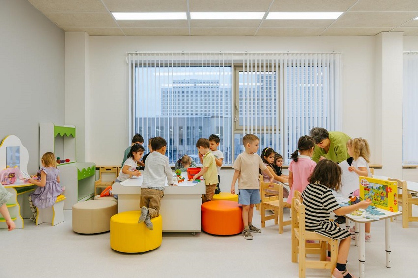 Здание детского сада рассчитано на 14 групп, в том числе младшего возраста до трех лет. Новый садик находится рядом с корпусами 8.1 и 8.2 В нем созданы комфортабельные условия для отдыха и развития детей.
