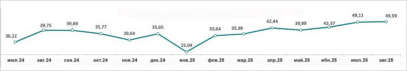 Льготная ипотека в августе заняла 57% от всего количества и 76% от общего объема выдач. В 2024 году эти показатели оценивались в 46% и 62%.