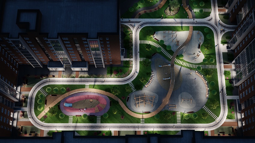 В жилом комплексе Centropolis будет проходить зеленый прогулочный бульвар с беседками, лавочками, детскими площадками и беговыми дорожками. Также в Centropolis будет представлен многоуровневый двор с приватным стилобатом.